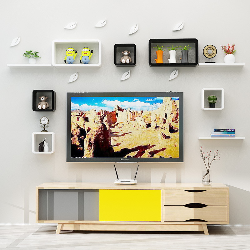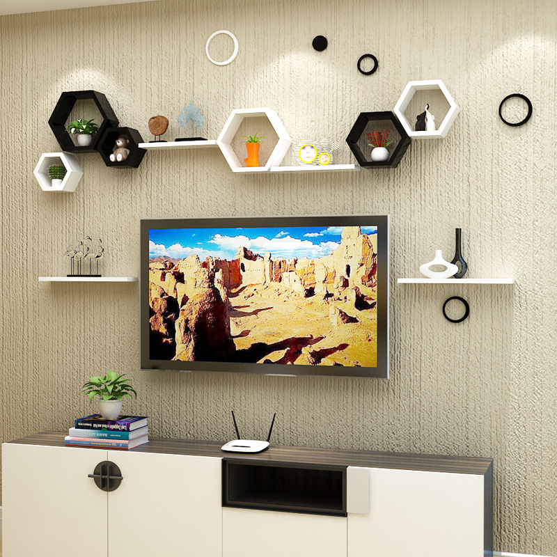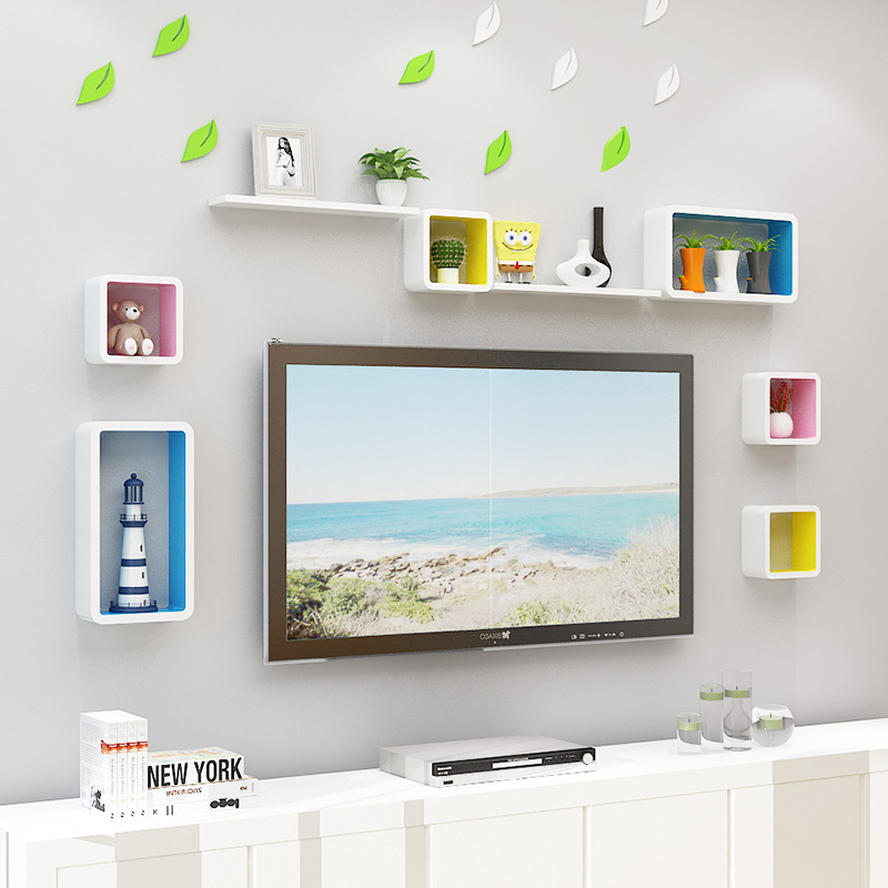 Film and television background wall hanging wall shelf hole-free creative lattice bedroom living room wall TV wall decoration