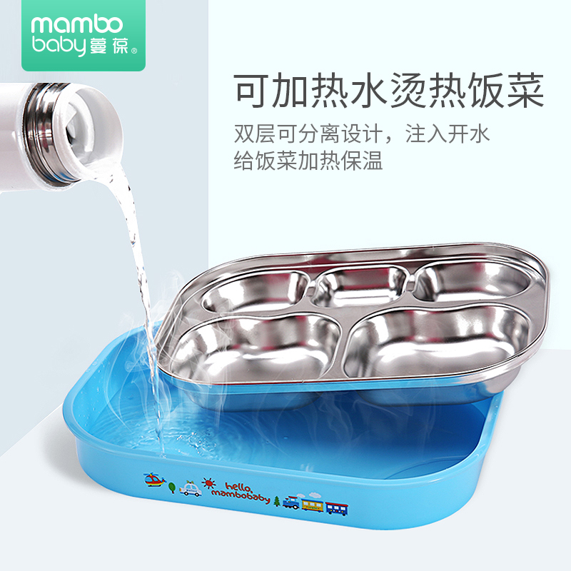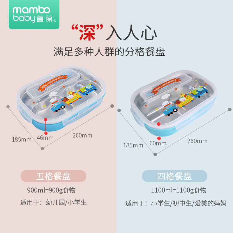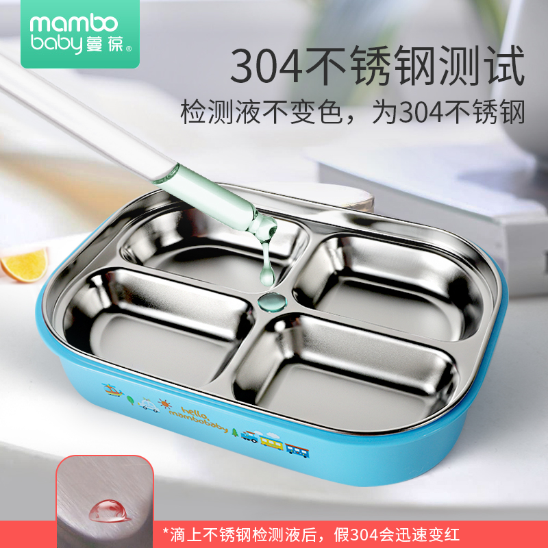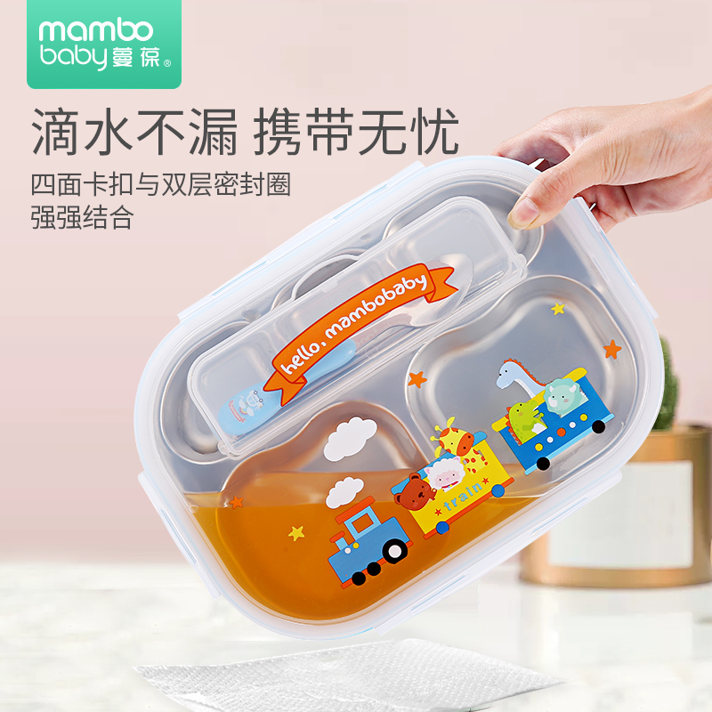 Children's lunch box Stainless steel grid tableware Baby separation plate Lunch box Primary school lunch box First grade with lid