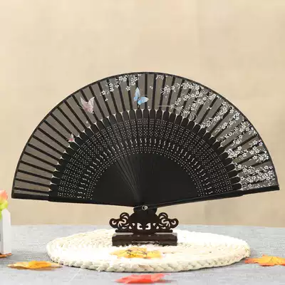 Ladies classical fan craft Chinese style folding fan Ancient style Women's silk silk small folding fan Dance folding fan Summer