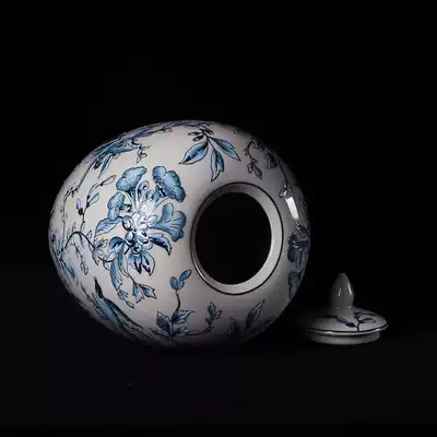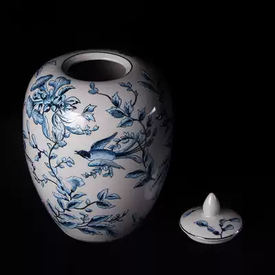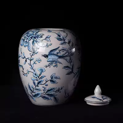 Handmade high-end Jingdezhen Ming and Qing Qianlong pastel vase relief ink Bluebird antique ceramic decoration living room