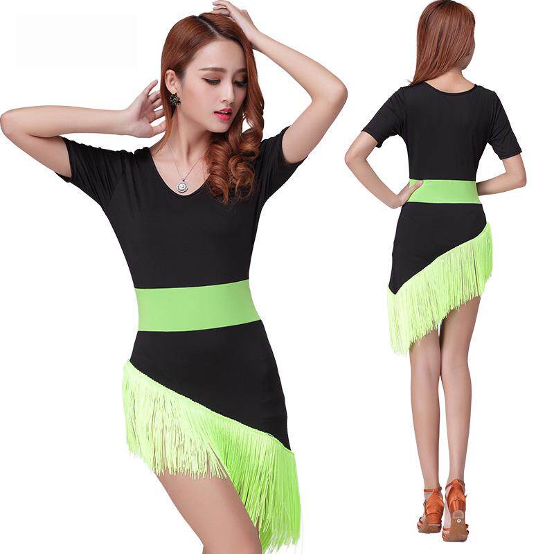 New adult female spring summer short sleeve Latin dance performance clothing dance tassel dress practice dress performance clothing