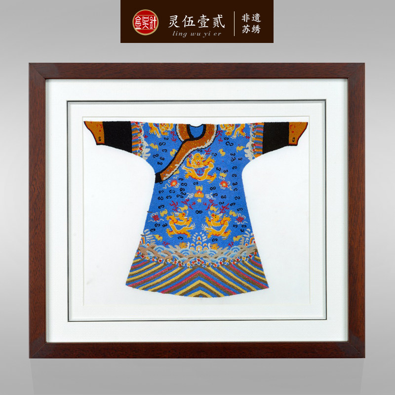 Golden Wu needle pure hand embroidery Su embroidery finished hanging painting corridor bedroom decorative painting Seed embroidery Dragon robe