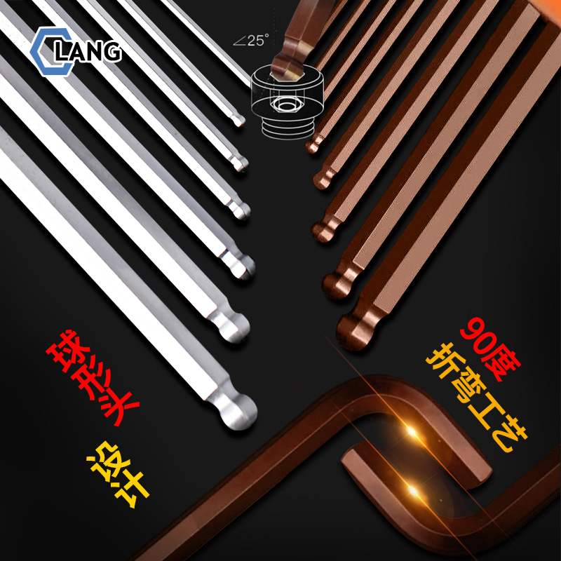 Seven-piece set of medium and long inner hexagonal wrench with sand butyl chromium ball head Seven-piece set of bronze flat head medium and long inner hexagonal wrench seven-piece set of bronze ball head medium and long inner hexagonal wrench