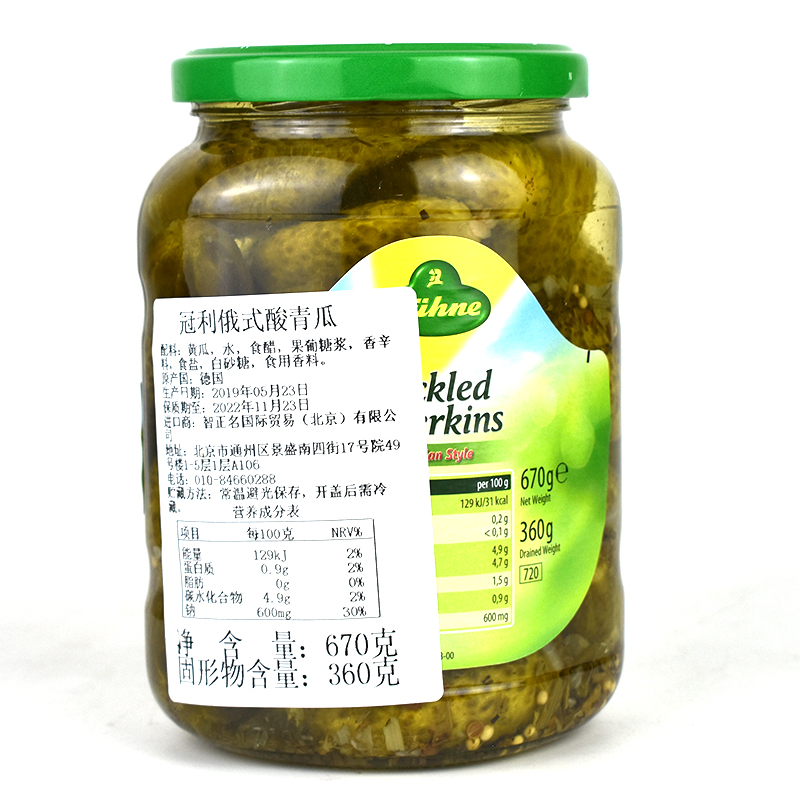 Gunli Russian acid cucumber 670g acid cucumber cucumber Western meal hamburger salad side dish in Do Province