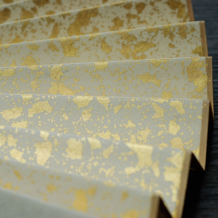 Qingyun selection of Jin Longtang parchment paper fan surface sprinkled with real gold mud gold and snowflake gold fish son gold quality folding fan surface