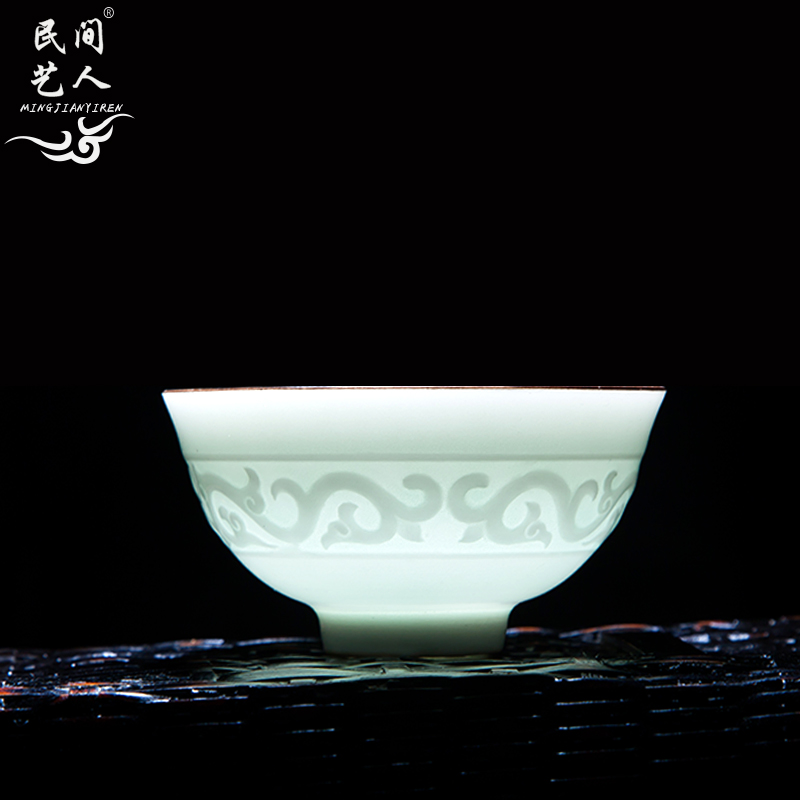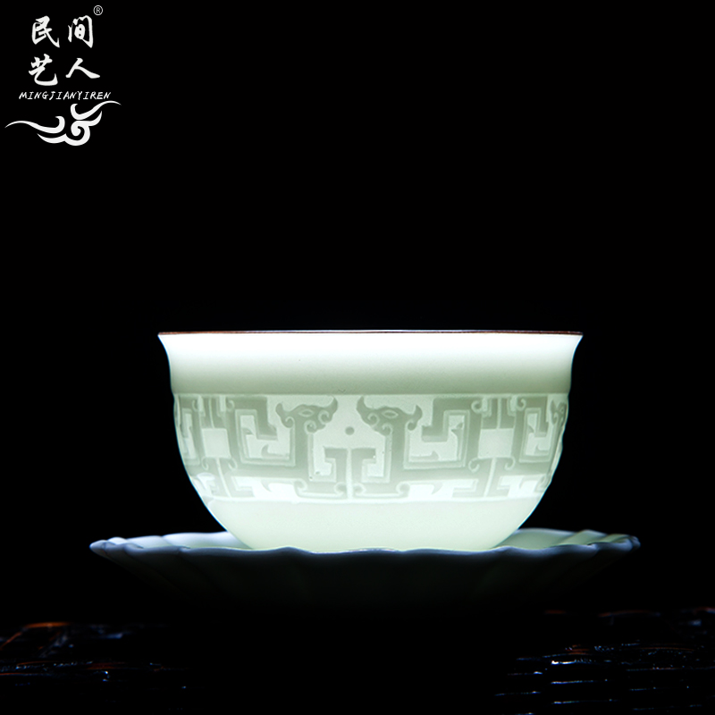 Small Pu'er Cup Celadon Luohan Cup Celadon Small Embossed Cup Shadow Blue Antique Bowl Pressed Hand Cup Celadon Shadow Green Chicken Cup Lotus Shadow Blue Cup Large Embossed Cup