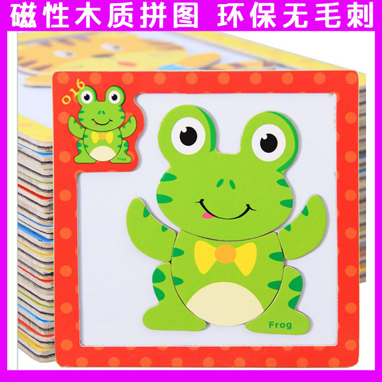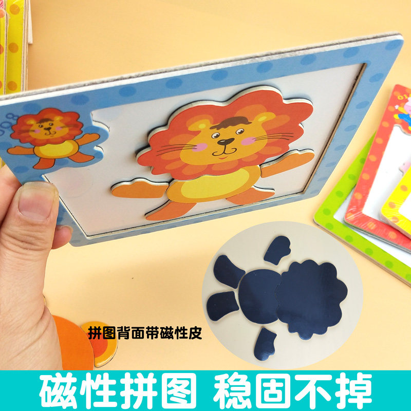 Children's wooden magnetic solid jigsaw puzzle male and female baby early lessons intellectual carsharing toy 1-2-3-4 years old
