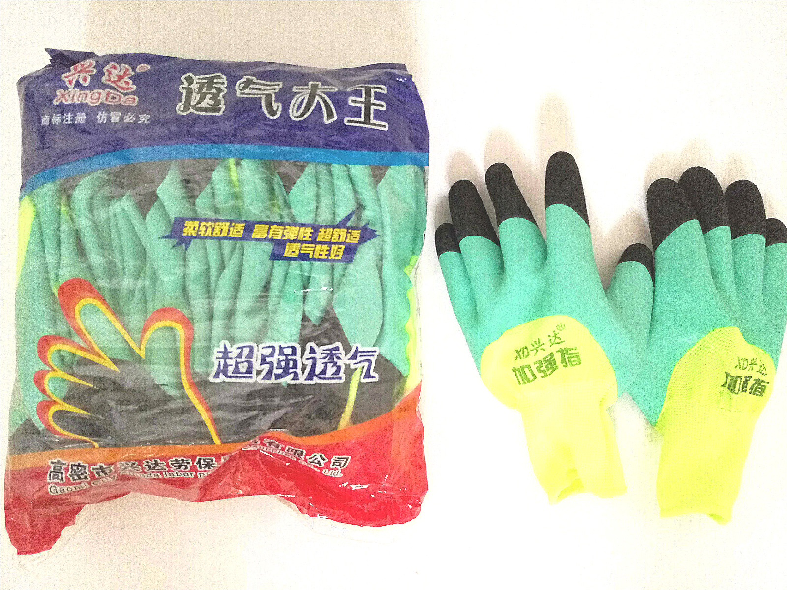 Xingda breathable reinforced refers to yellow sand green rubber wear-resistant non-slip soft thickened labor protection gloves 12