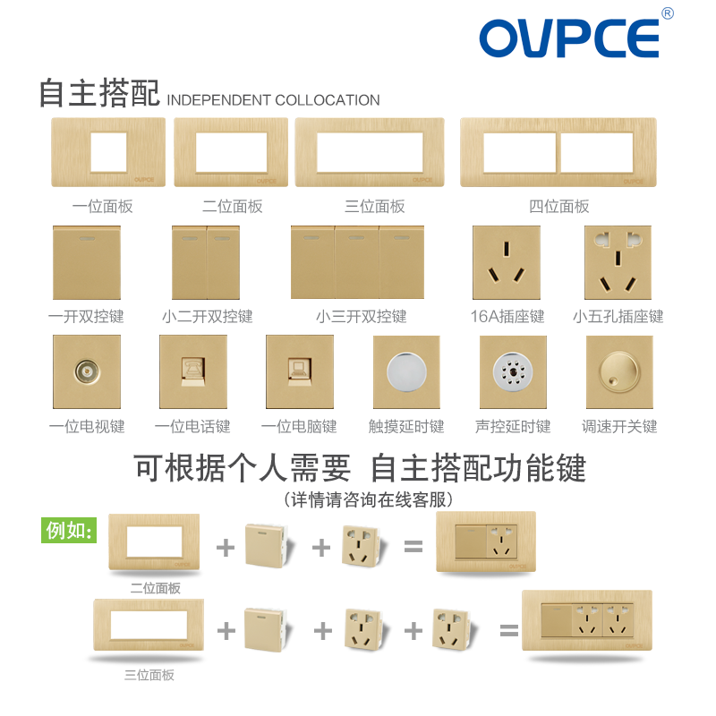 Champagne Golden Wire 118 package rectangular knob fan fan pole - free module core adjustment key