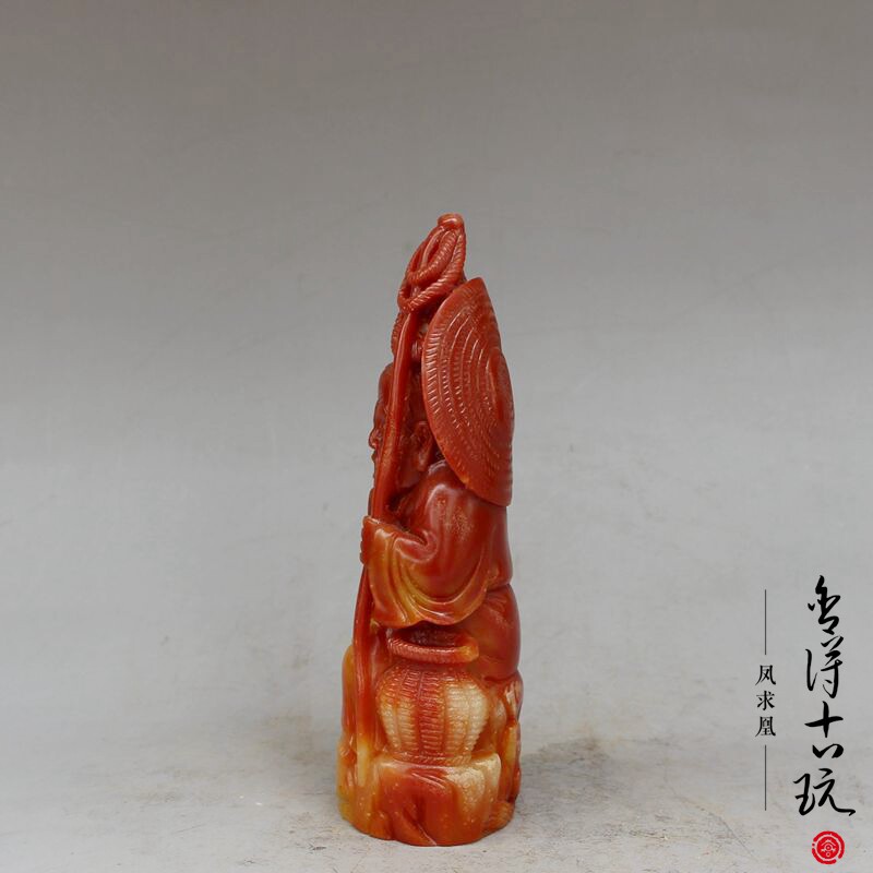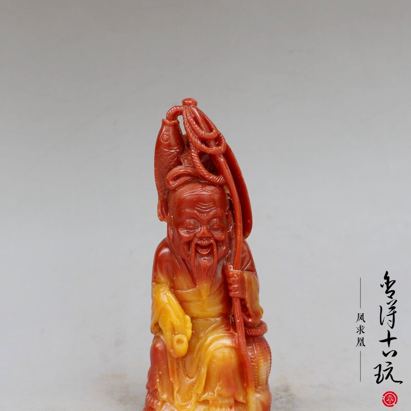 Antique carved Shoushan stone fisherman old man antique collection handle ornaments handicrafts Bogu rack decoration