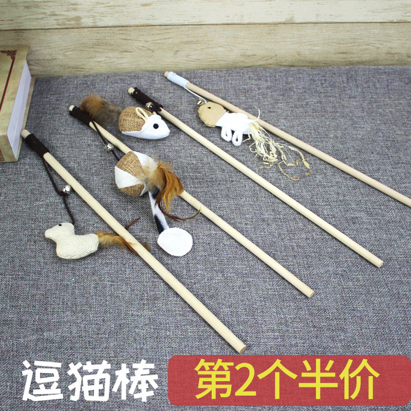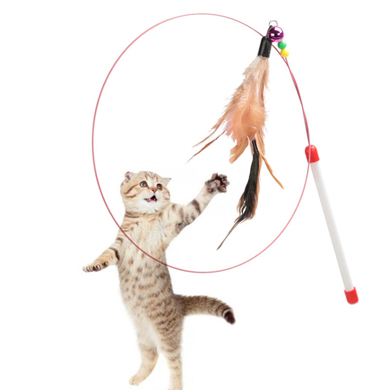 Cat toy teasing cat stick wood long pole feather bell Bell Plus Fib Puppets British Short Blue Cat Steel Wire Long Self-teasing the cat pole