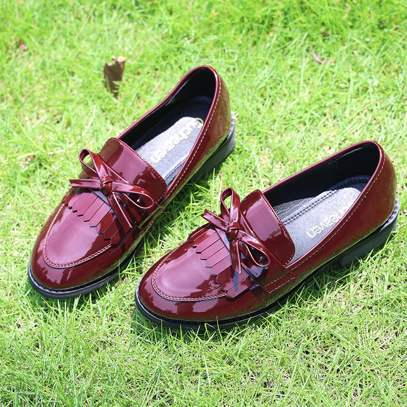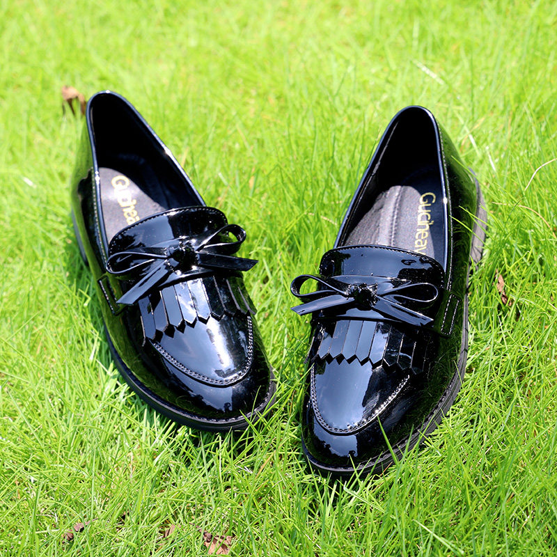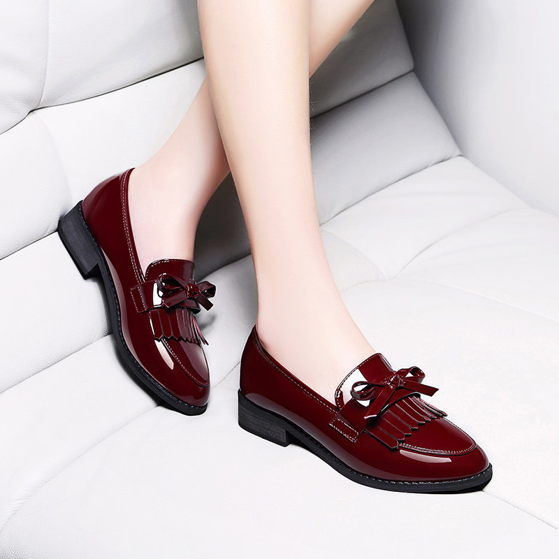 Small leather shoes Inn Lengfeng 2022 Spring autumn new soft leather flat bottom lacquered leather Leufoo shoes female fluo Subow tie-in shoes