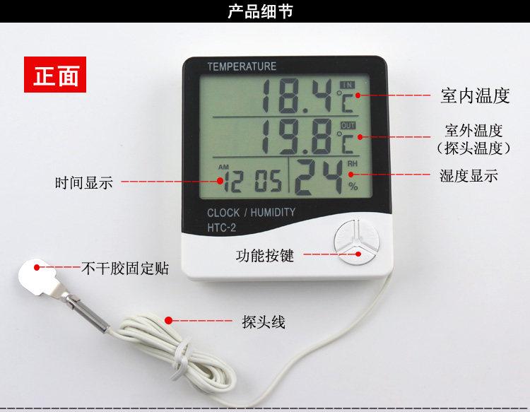 High-precision digital display electronic temperature and humidity meter household with temperature probe indoor and outdoor dual temperature display large screen