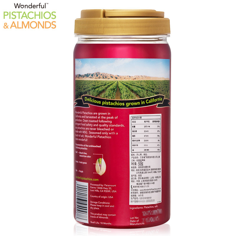 Wonderful imported salt baked Pistachio canned 508g Pistachio batch dry snacks