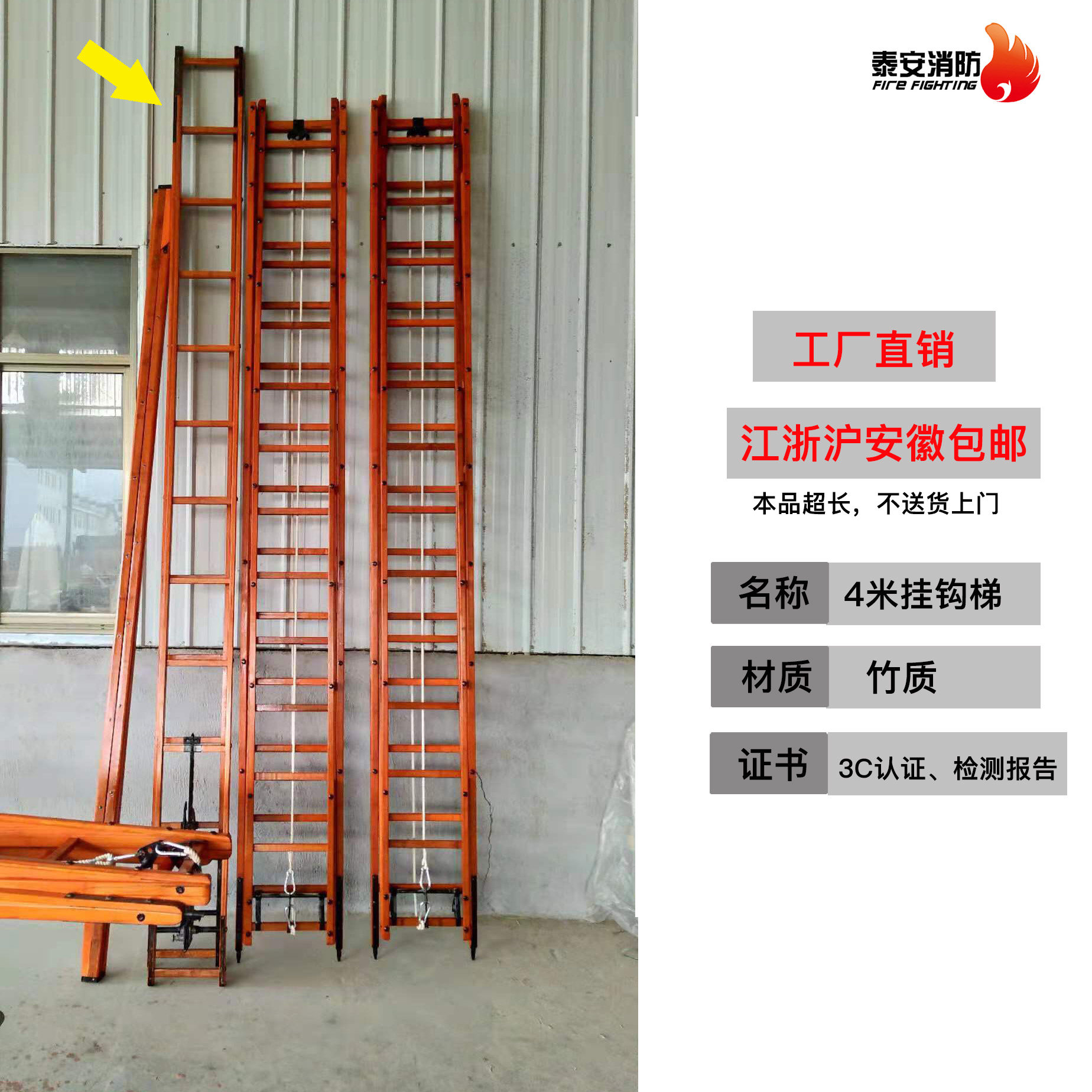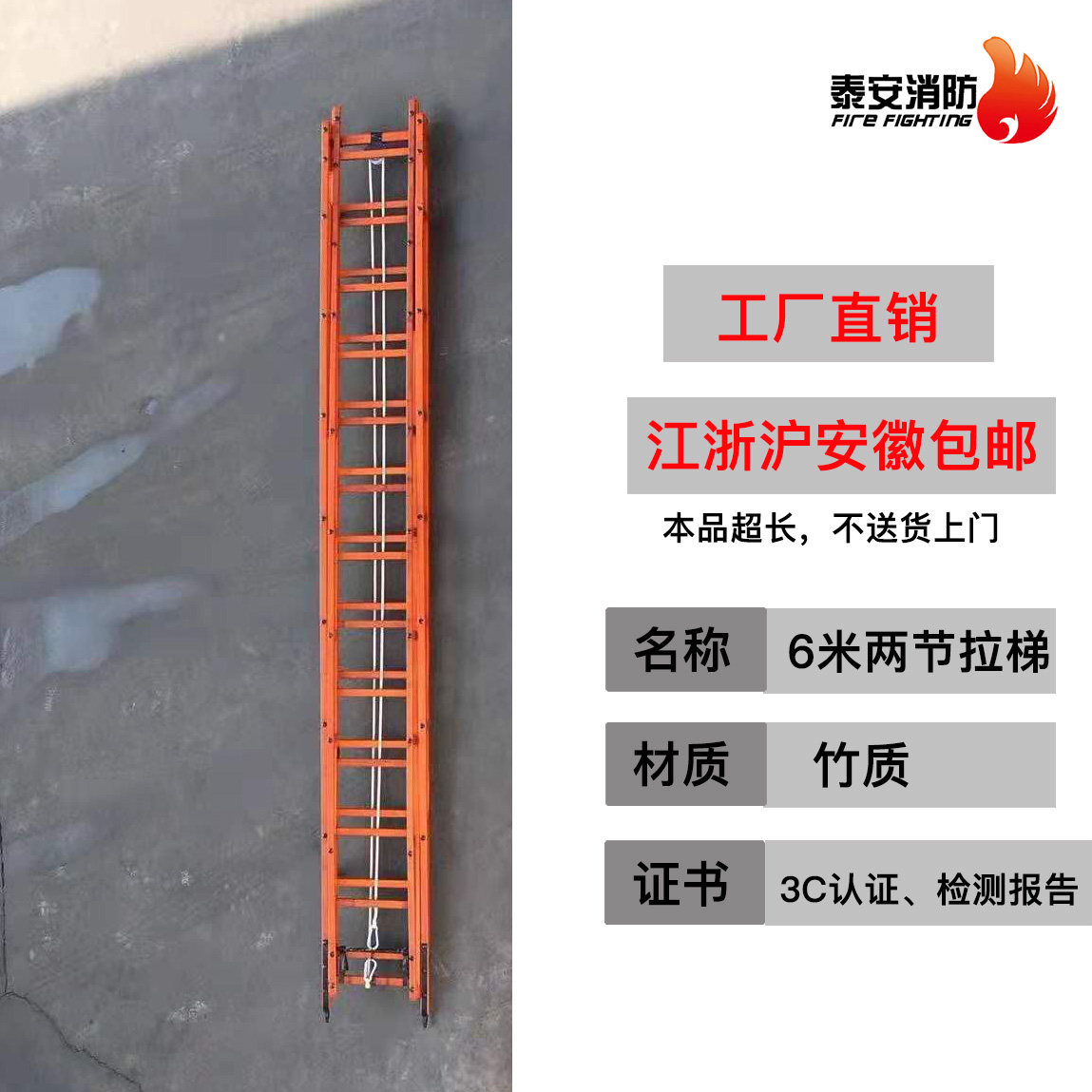 Firefighter horizontal bar ladder hook ladder 6m pull ladder 9m pull ladder 15m aluminum alloy three-fold ladder pull ladder competition