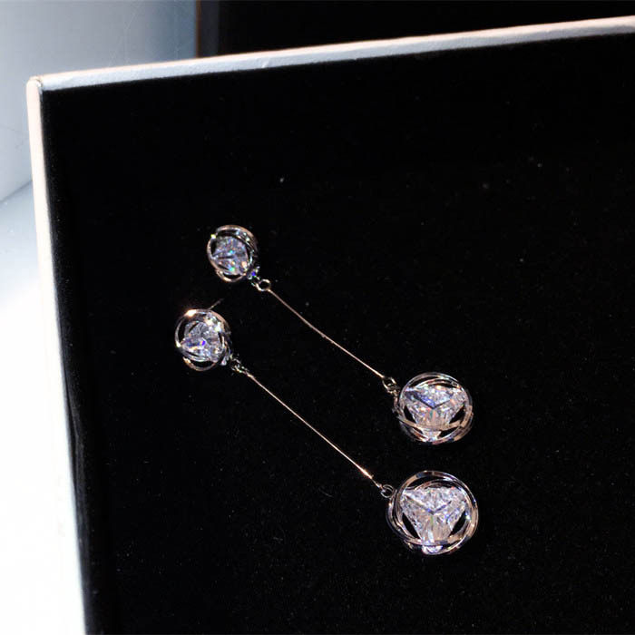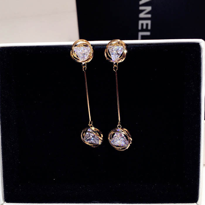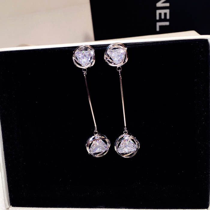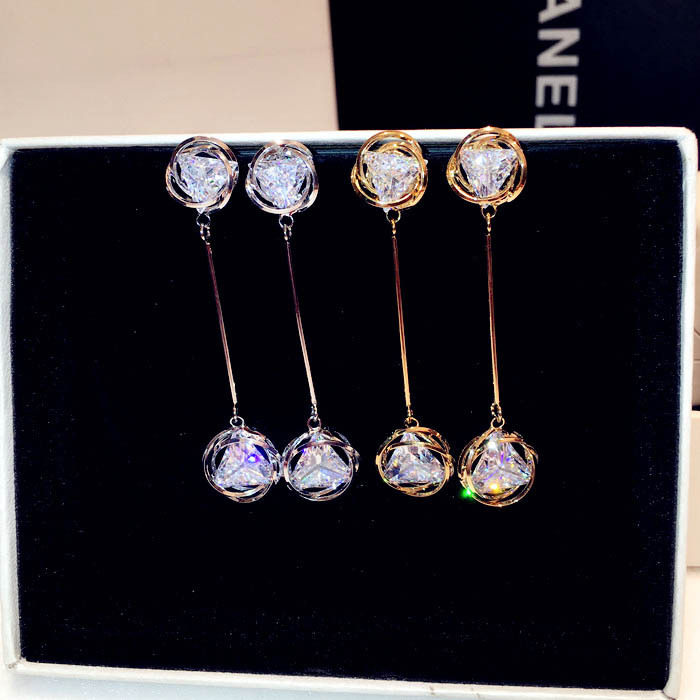 Fashion zircon tassel earrings female long version temperament earrings crystal earrings all-match jewelry Japan Korea earrings Europe and the United States