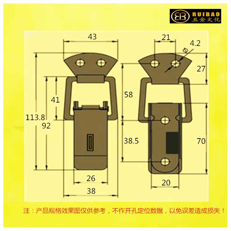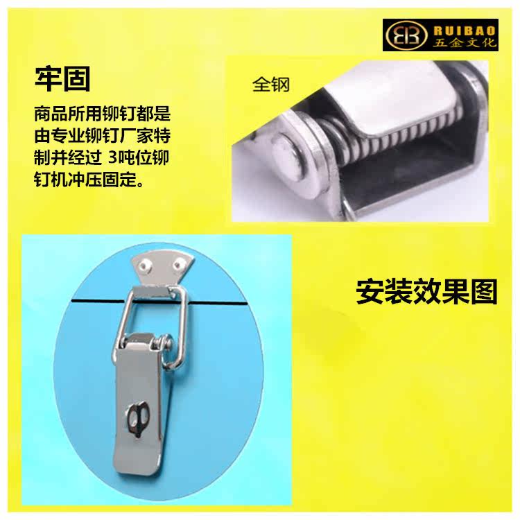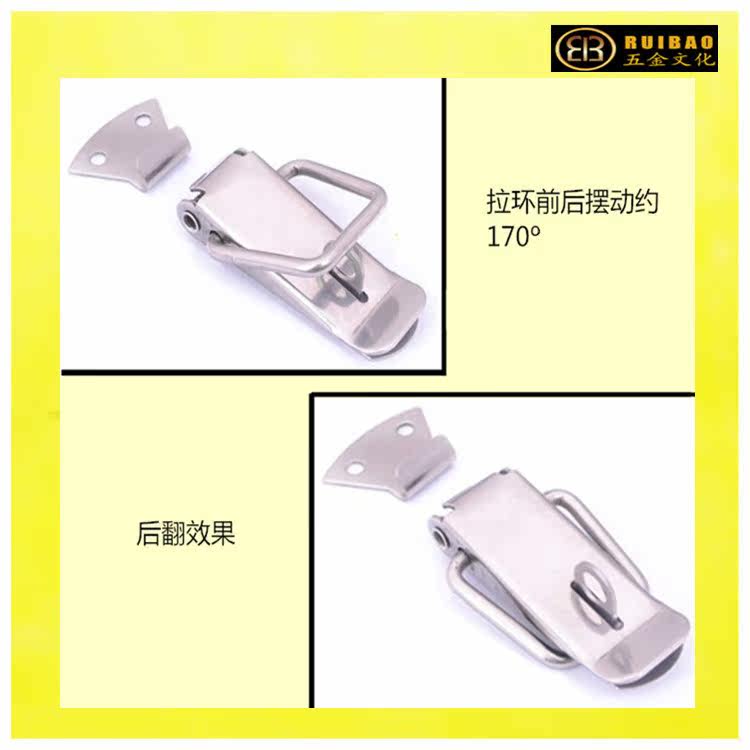 Large heavy-duty flat-mouth buckle 304 stainless steel hardware lock spring buckle aluminium alloy iron wood case buckle lock catch