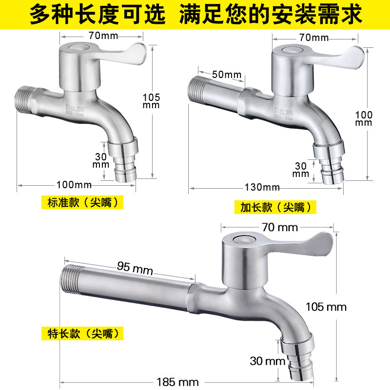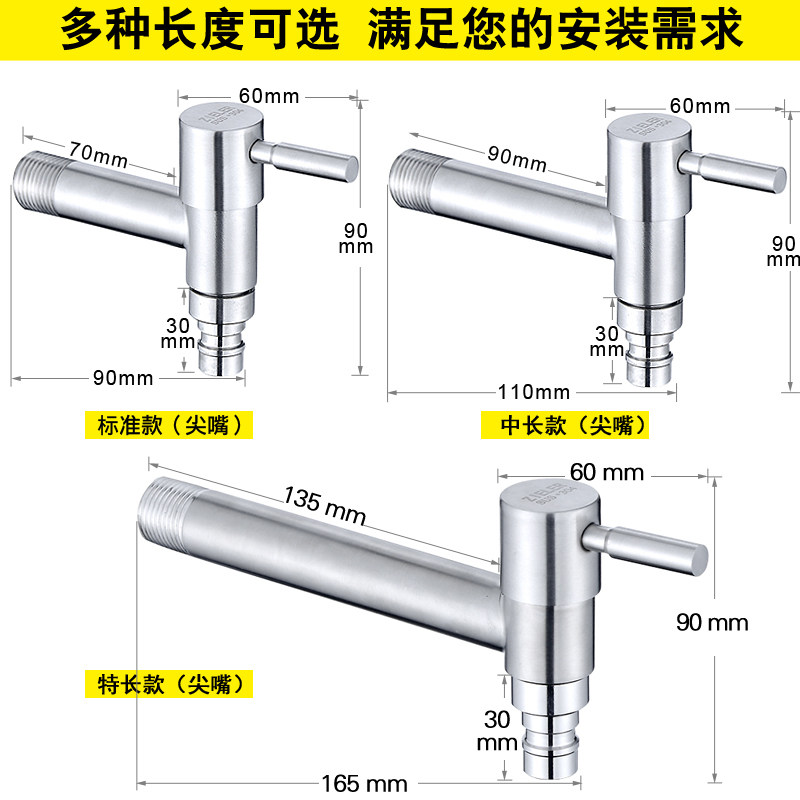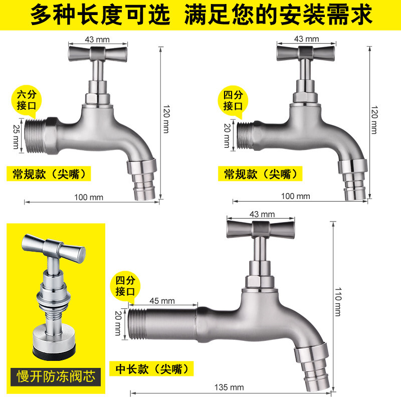 Stainless steel washing machine faucet mop pool quick open and lengthened 4 points single cold household kitchen into the wall faucet nozzle