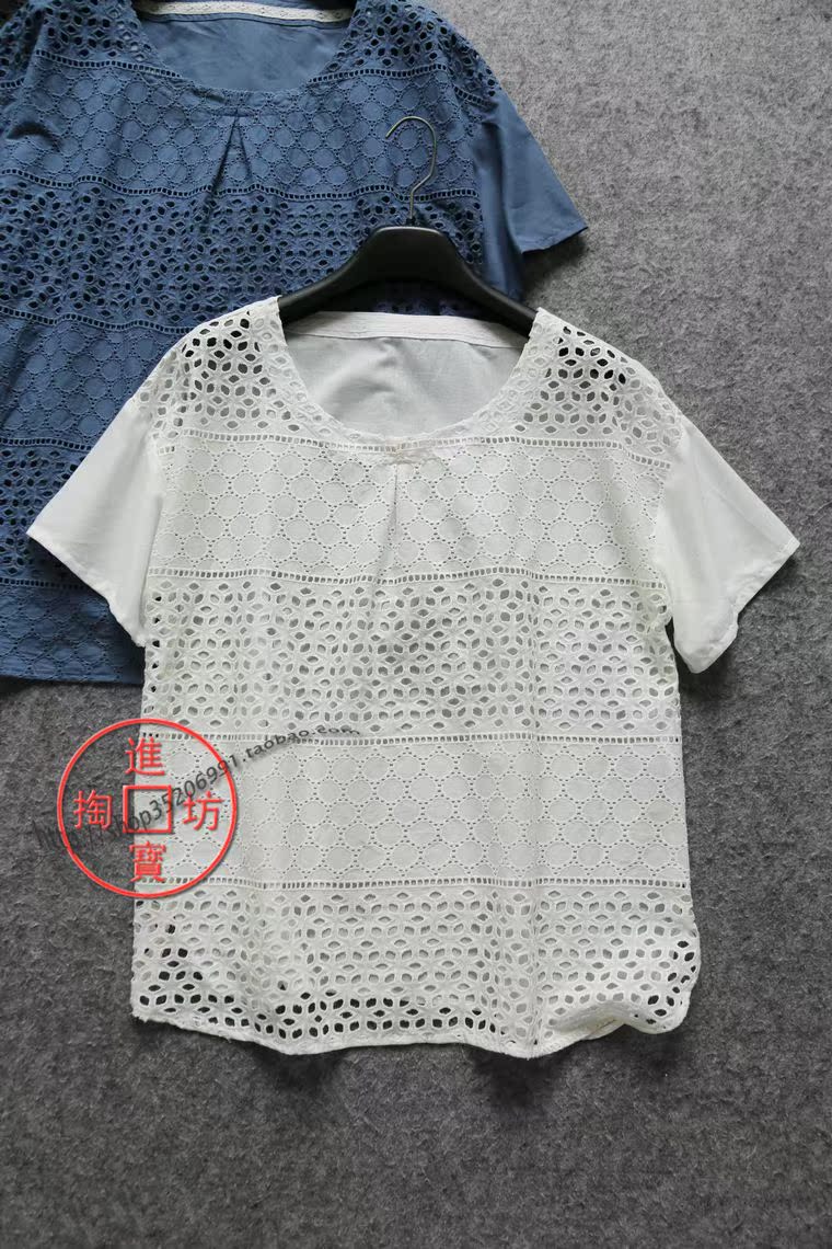 258D 0705 elegant and delicate hollowed-out embroidery loose straight cylinder type of fall shoulder short sleeve head shirt