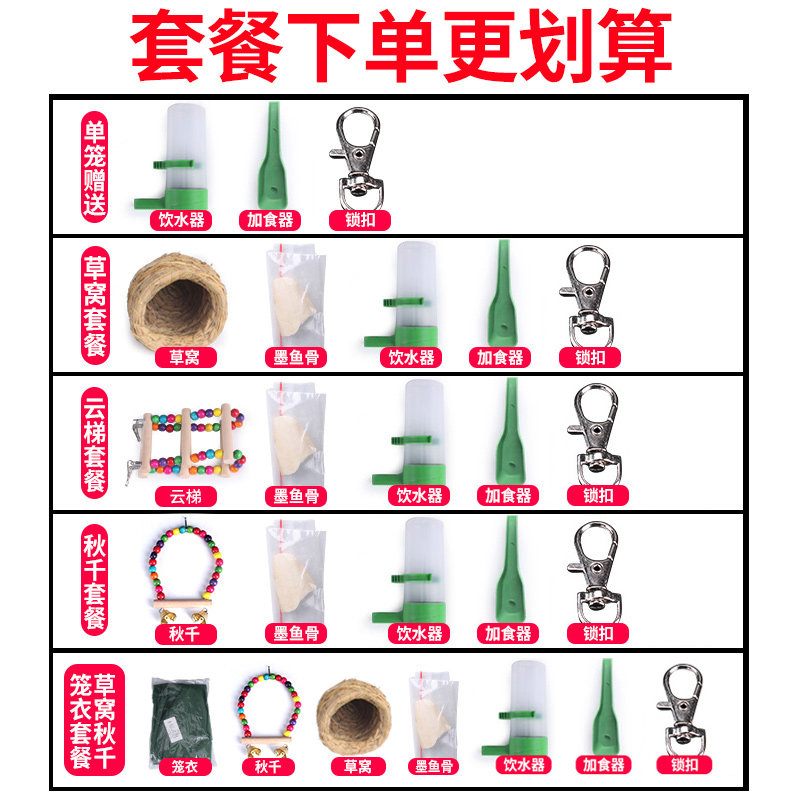 Electroplated birdcage Grass nest package Electroplated birdcage single cage Electroplated birdcage color swing package Electroplated birdcage ladder package Electroplated grass nest swing cage package