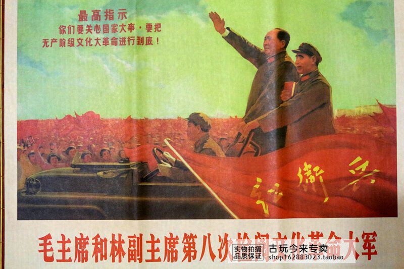 Cultural Revolution Painting Propaganda Painting Chairman Mao Portrait Nostalgic Poster Decoration Painting Mao and Lin Eighth Review of the Cultural Revolution Army