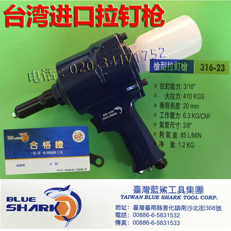 Taiwan blue shark pneumatic rivet gun 316-23 rivet gun air nail gun pneumatic core rivet gun tool