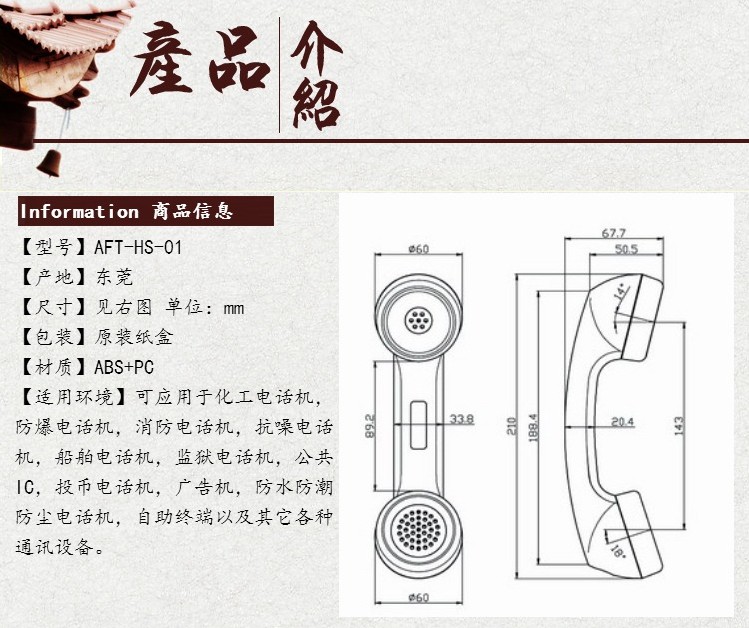 Industrial telephone accessories handle hook self-service terminal anti-riot round handle handset communication equipment handle handset