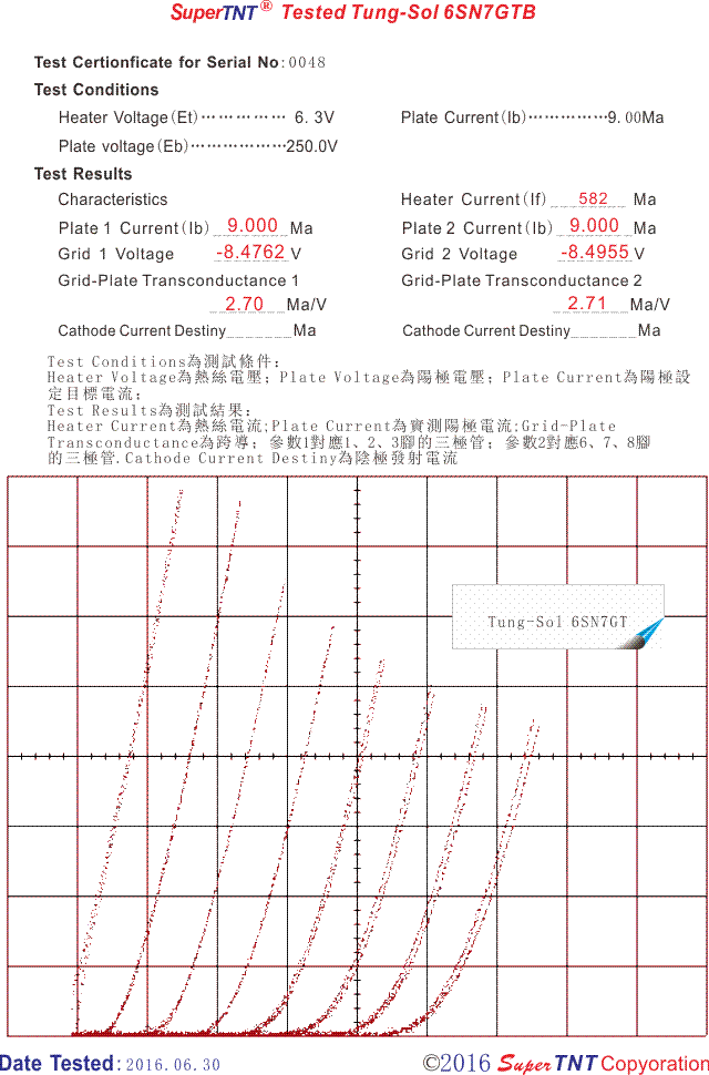 New Tung-Sol 6SN7GTB True full aging precision test with measured curve 6SN7