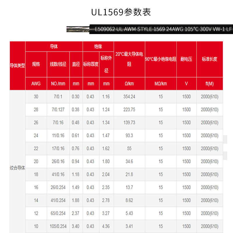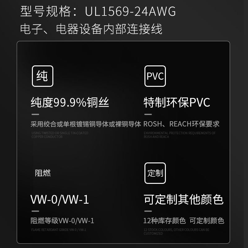UL certified American standard single core multi - share soft electronic wire UL 1569 - 24AWG environmental protection flame retardant electronic connection wire