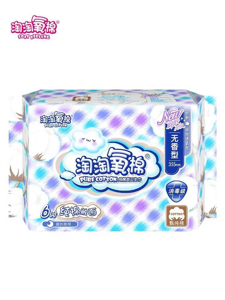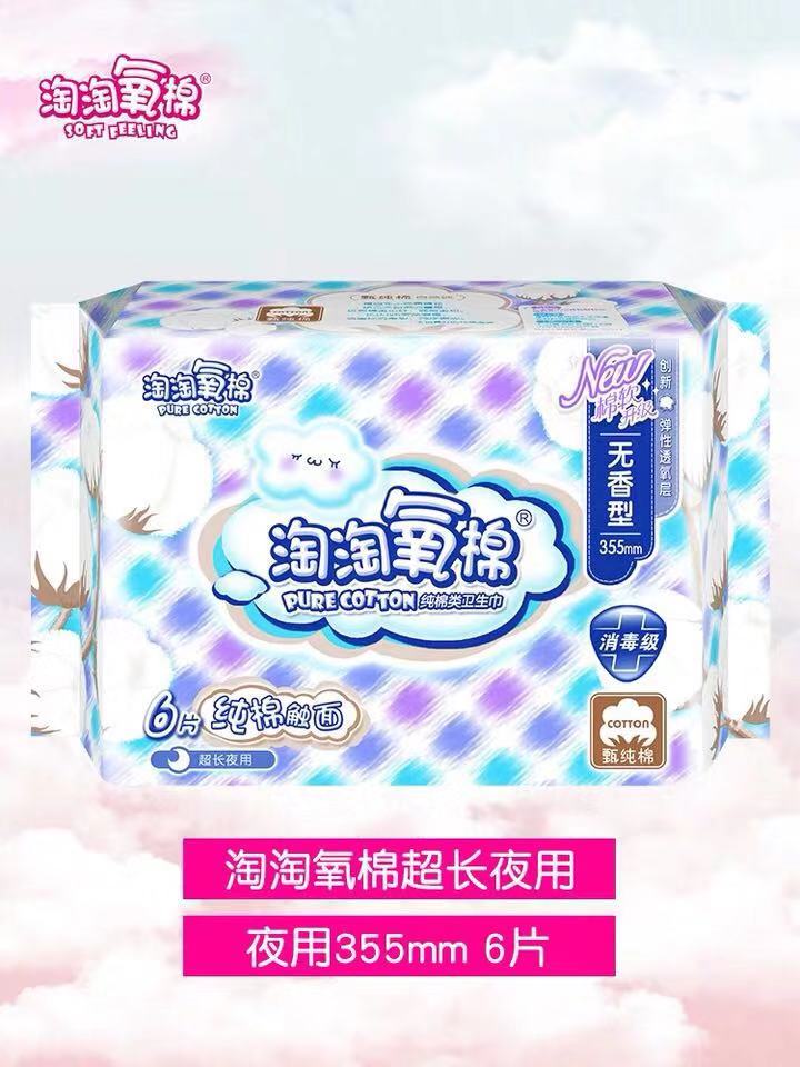 Clean and naughty knockout oxygen cotton extra-long night with sanitary cotton 355 Night with 6 sheets * 4 packets of fragrant pure cotton surface layer