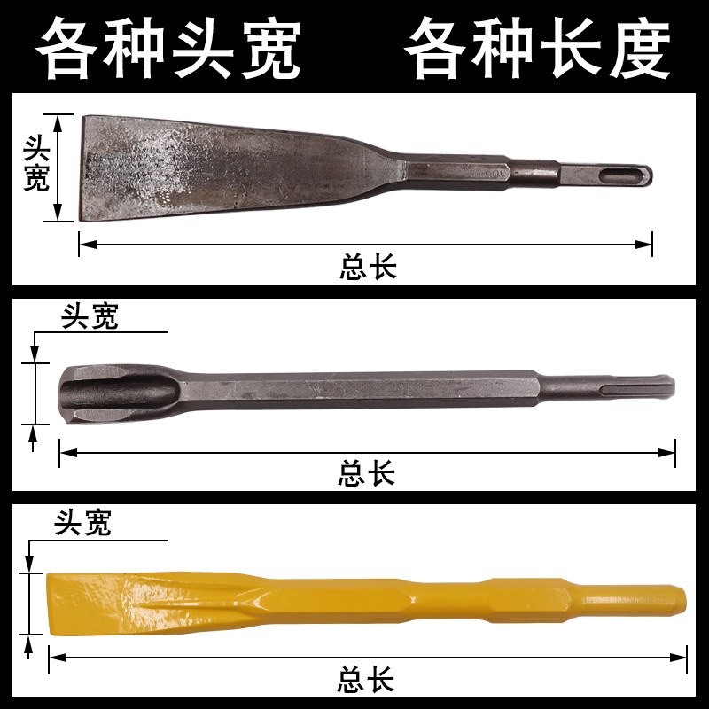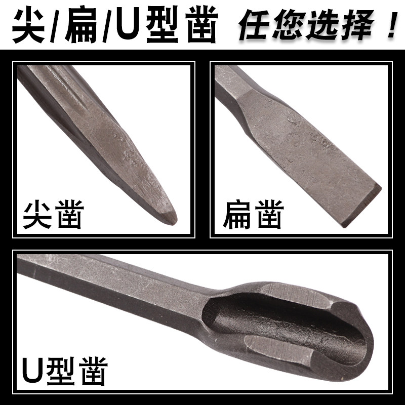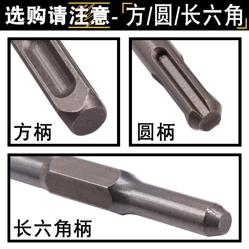 Electric hammer drill impact drill bit square shank Round shank hexagonal tip flat chisel pick drill Electric pick head shovel U-type mixed earth slotting