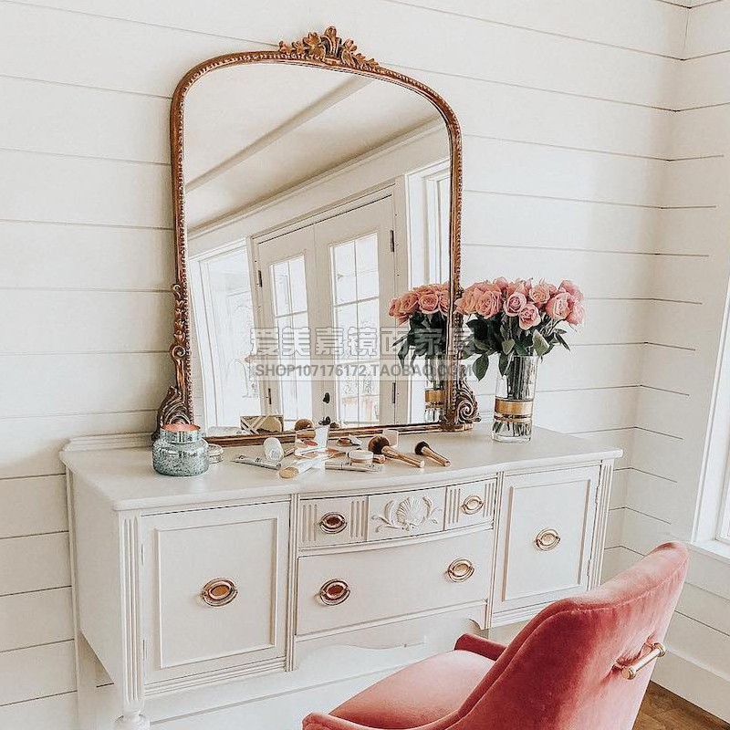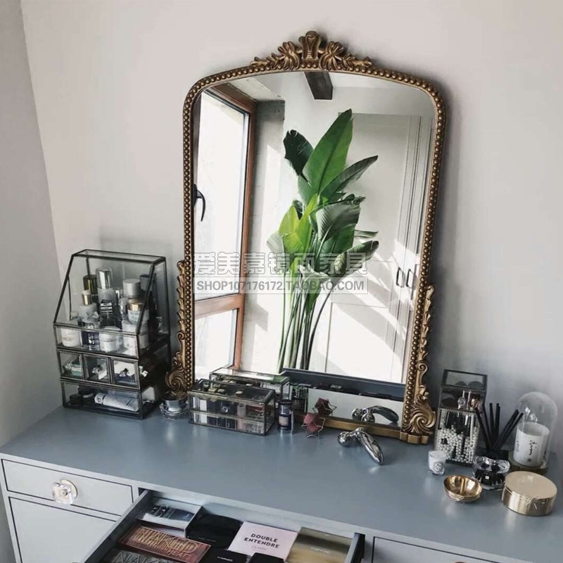 European dressing table desktop vanity mirror wall-mounted bedroom retro vanity mirror large net red gold old decorative mirror