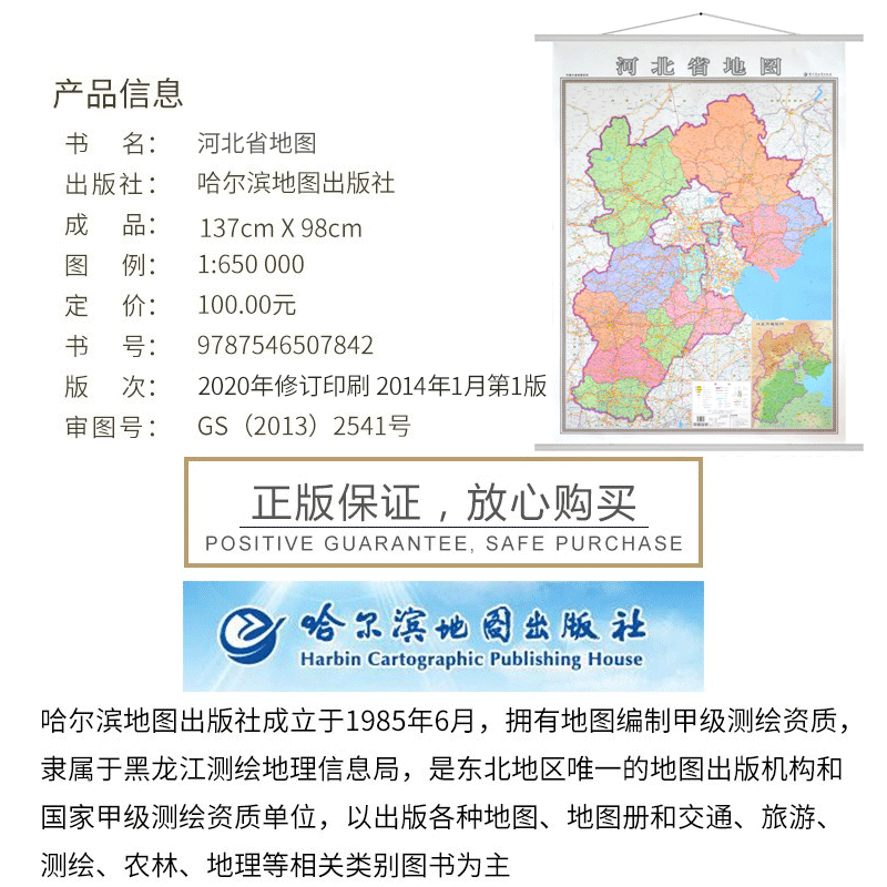 (Buy one get three free)Hebei Province map wall chart 2020 new version of Hebei Province map Home office map wall chart Administrative transportation Tourism River Airport details to the village center 1