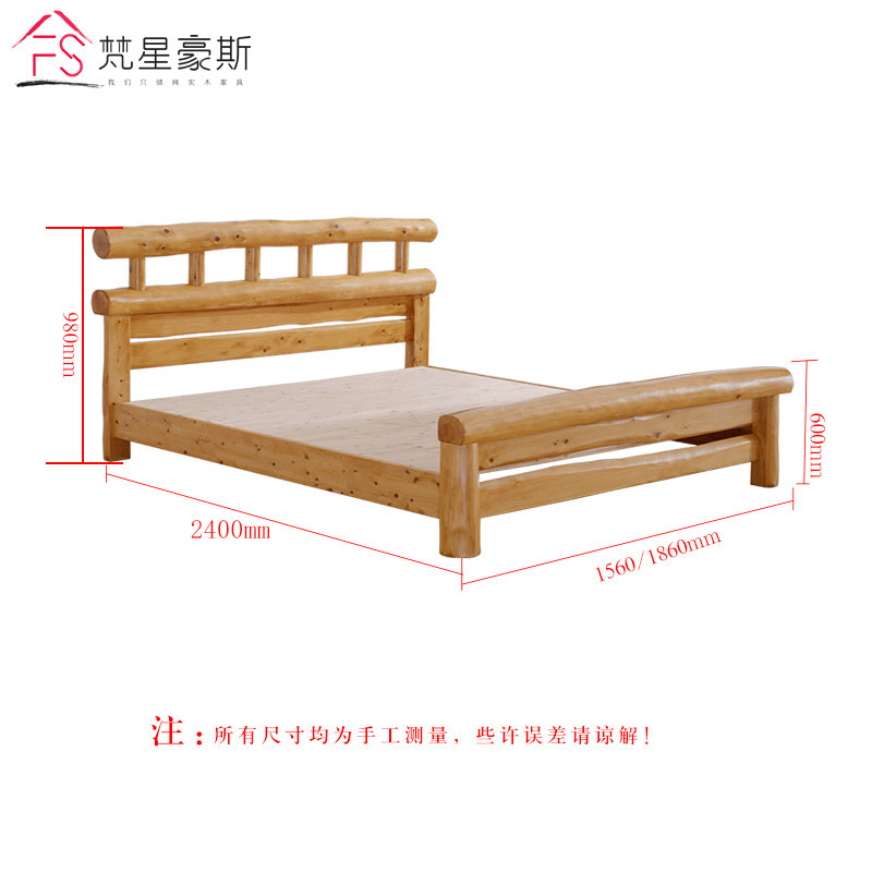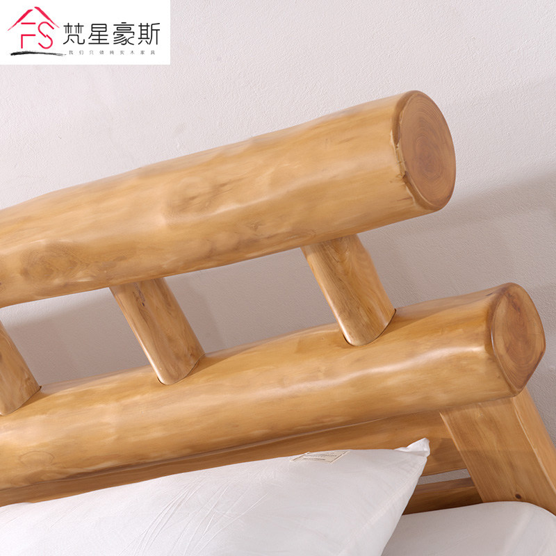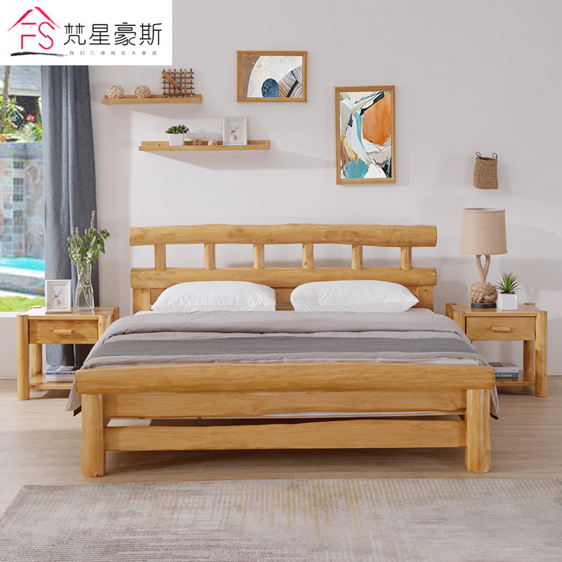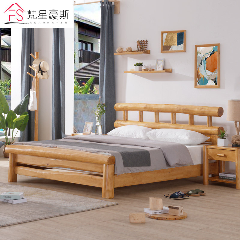 Chinese pure solid wood 1 8 m log bed 1 5 m eco-bed double golden cypress wood bed Minjuku furniture hardboard bed