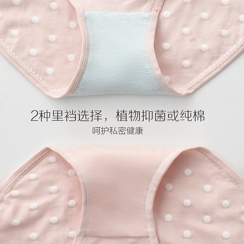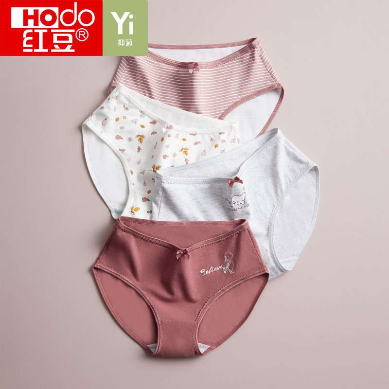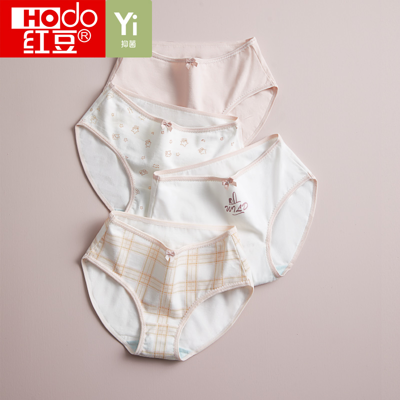 Red Bean Lady Pants Woman Pure Cotton Crotch Antibacterial Mid-Waist Adolescent Girl Thin Cartoon Unmarked Summer Cute Full Cotton Triangle Pants