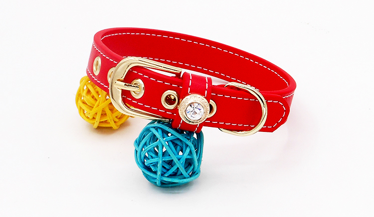 Large red positive red calf leather Achille genuine leather pet item ring VIP Bibear bell without traction