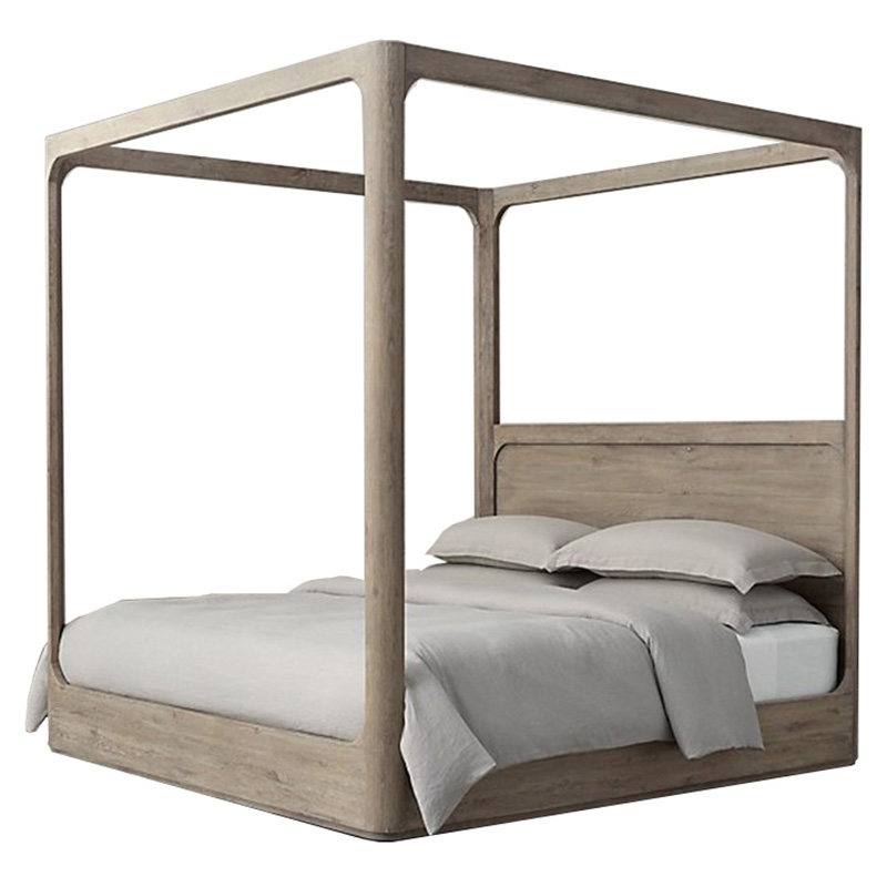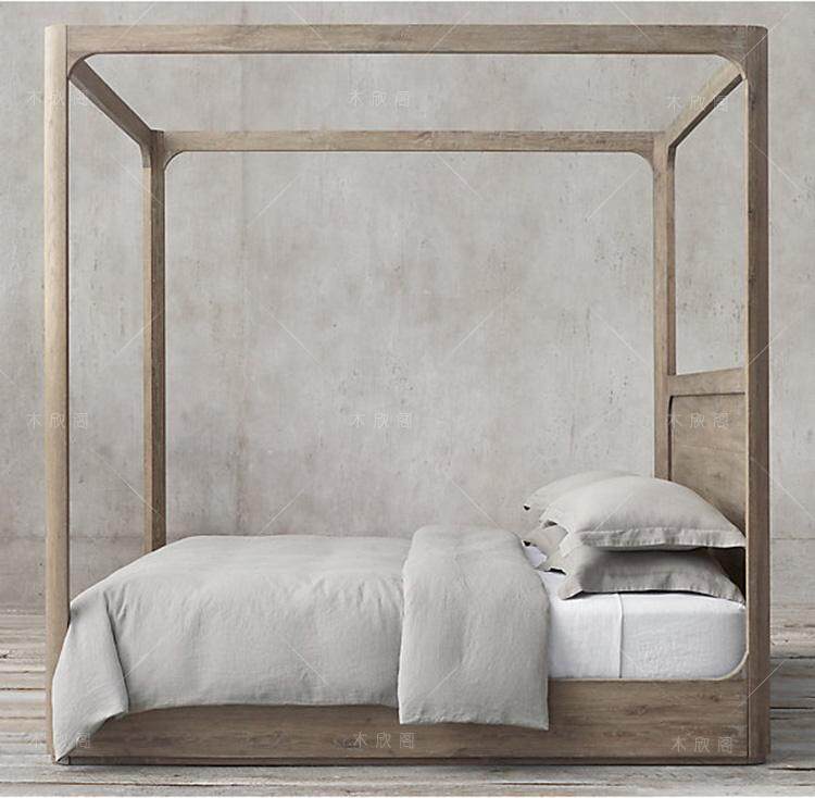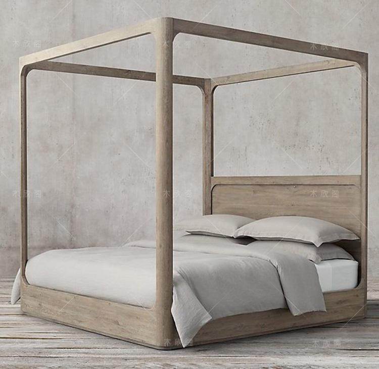 French country antique old solid wood shelf bed 1 8 meters four-poster bed Oak can be customized column bed