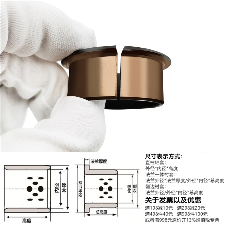 SF-1F Open PTFE oil-free crimping composite bushing Wear-resistant carbon steel tinned copper sleeve custom 12 14 15 16