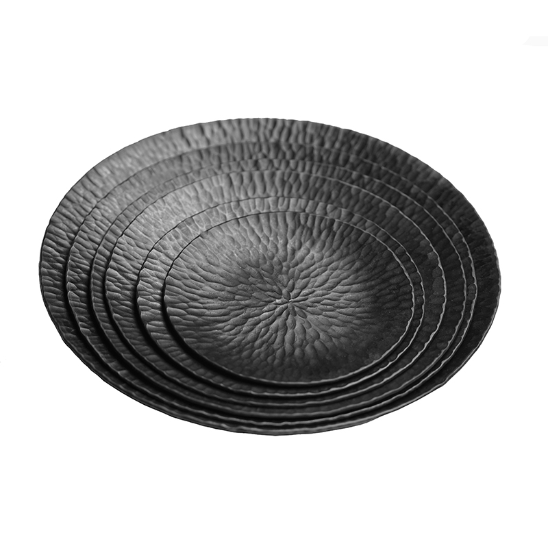 Touch touge hammered round iron plate hand forged iron to make fruit plate dinner plate tea plate real object plate