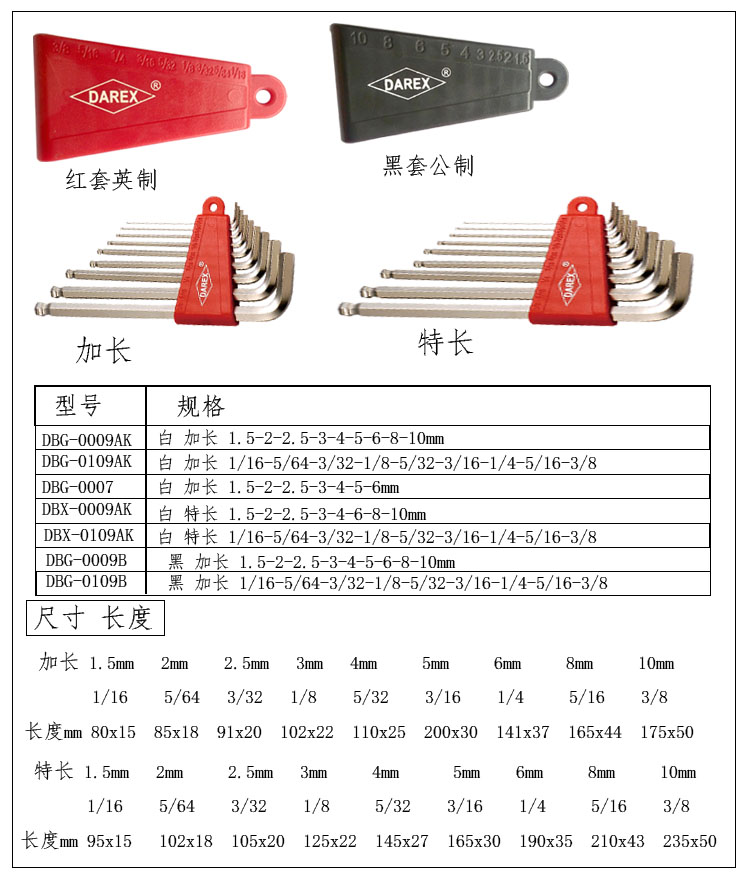 Taiwan DAREX inner hexagon wrench screwdriver plus hexagonal wrench 1 5-10mm special long hexagonal spoon