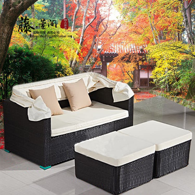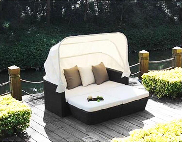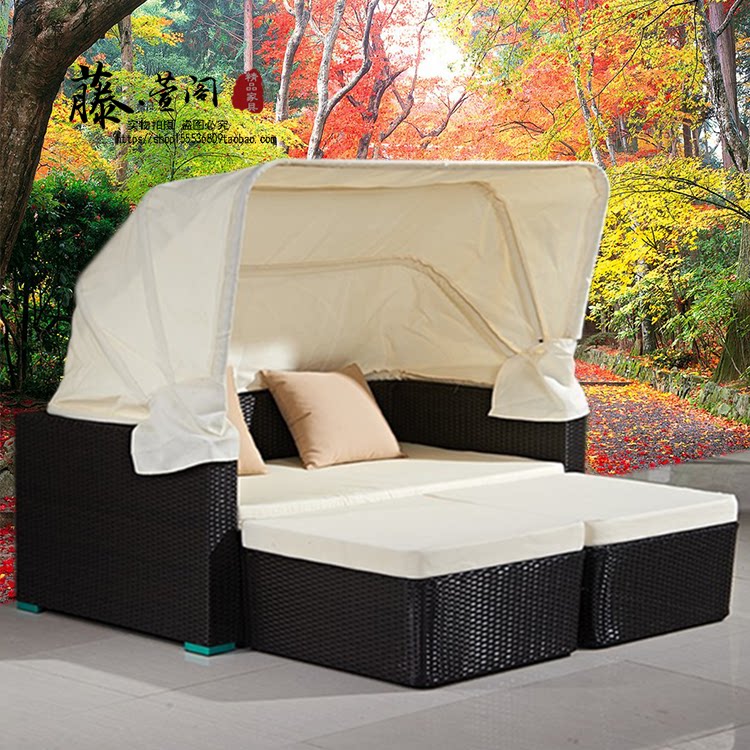 Outdoor reclining bed rattan rattan chair sofa balcony courtyard swimming pool with shaded sofa beach leisure reclining bed