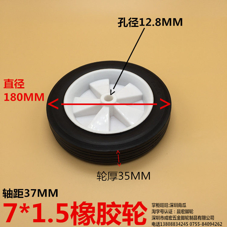 7-inch rubber wheel 7*1 5 lawn mower wheels scrubber air compressor casters aperture 13MM diameter 180MM