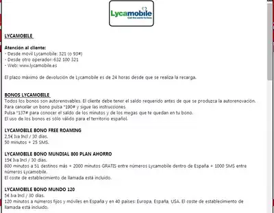Spain Lycamobilesim Card Recharge from 5 euros