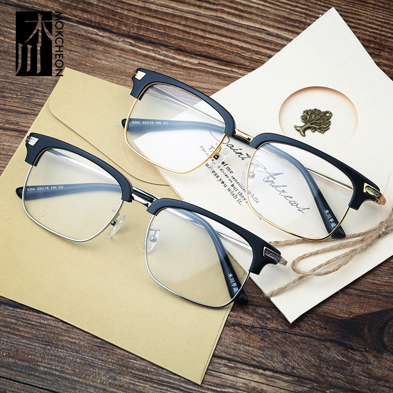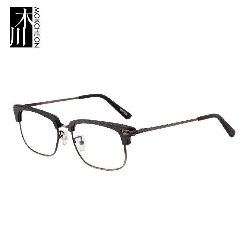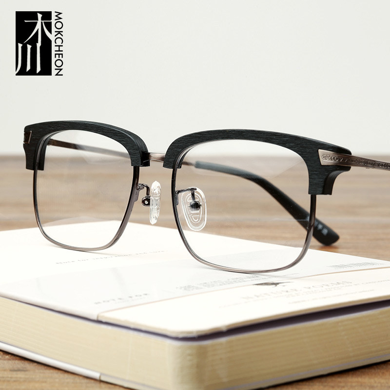 Mu Chuan glasses frame male retro wood grain half frame eye frame frame male big face personality finished product with myopic glasses female