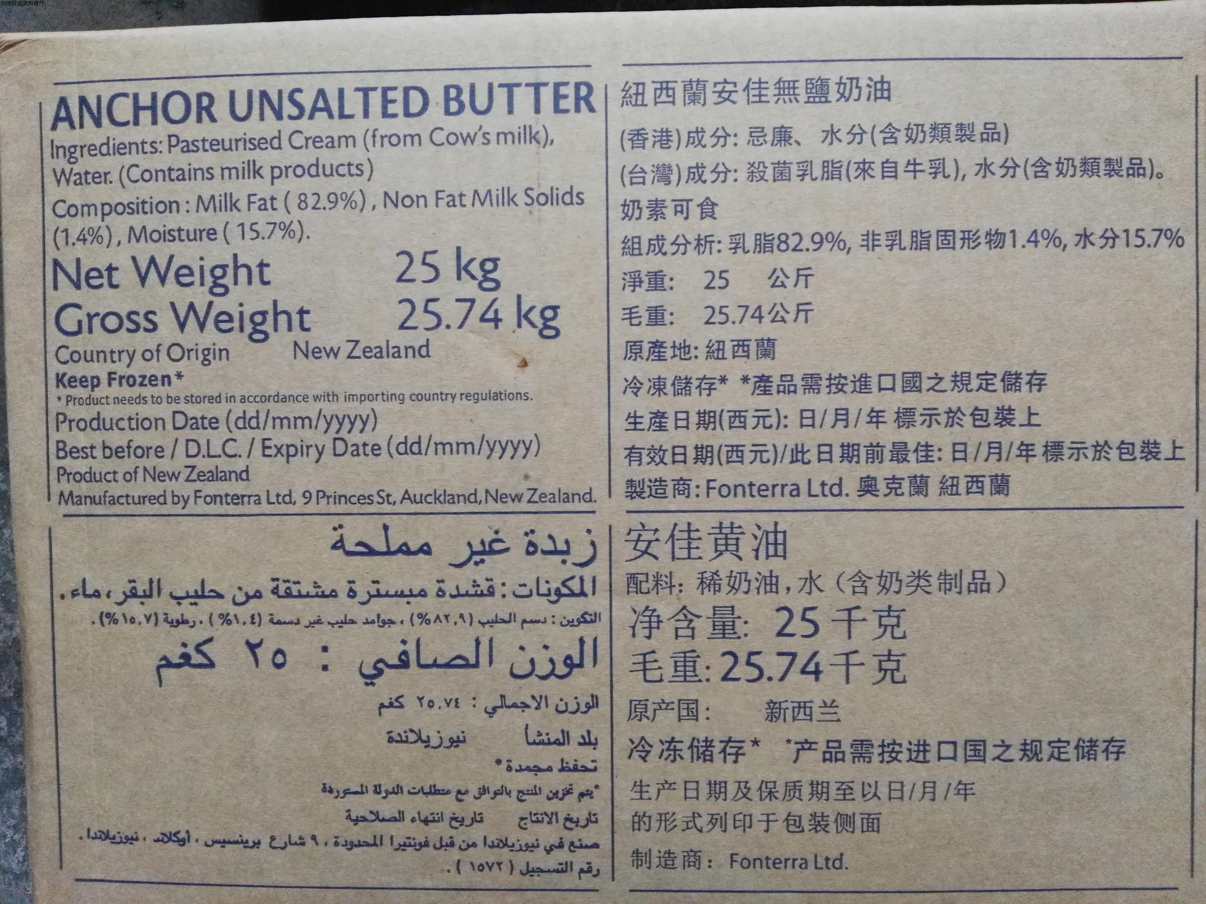 Anchor Anjia Butter 25kg Edible animal light butter Imported from New Zealand Anjia rhubarb oil