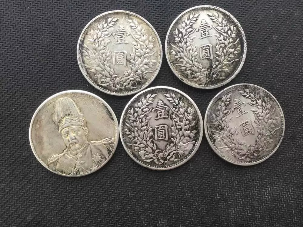 Silver Yuan Silver coin silver round collection Yuan-head silver dollar Grand total cover 5 pieces of Yuan Shikai Silver coin 5 pieces 1 set