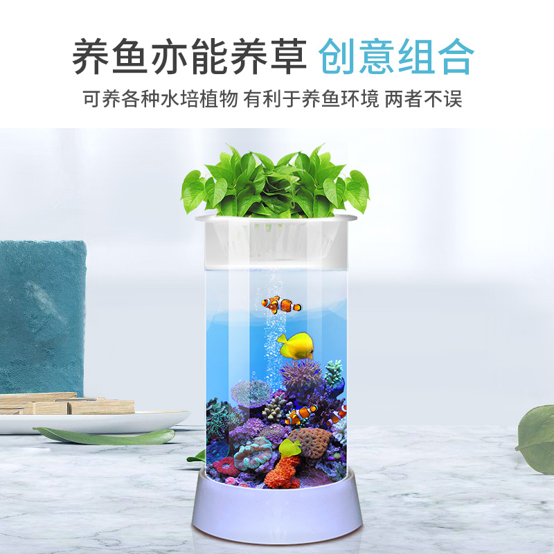 Carrekitchen super white fish tank living room small goldfish tank cylindrical household aquarium creative water-free vertical