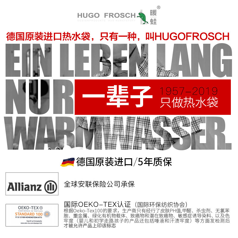 German HUGO creative zipper flannel jacket 2 0L hot water bag ecological anti-scalding water filling warm water bag
