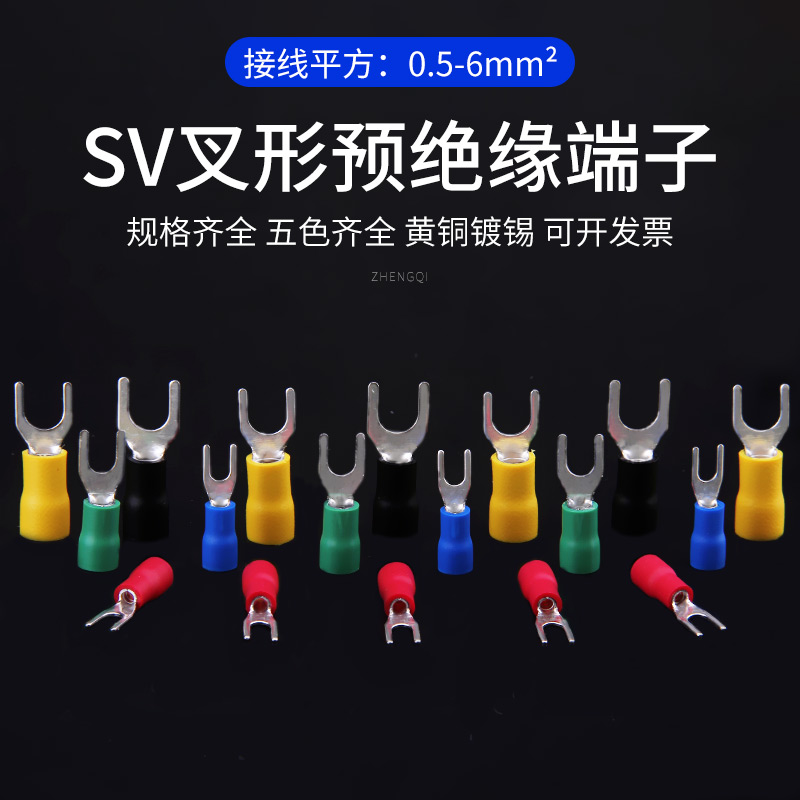 SV1.25-3 Euro type fork type pre-insulated terminal block Y-shaped U type cold press wiring nose wire lug copper end head