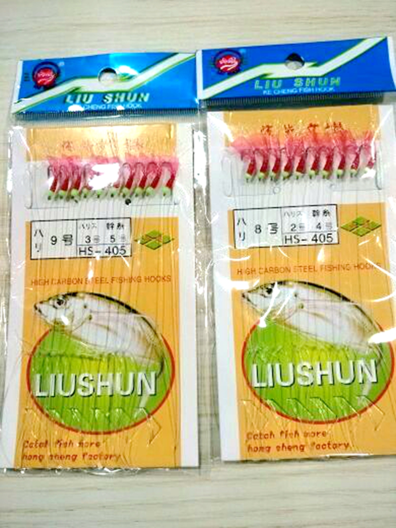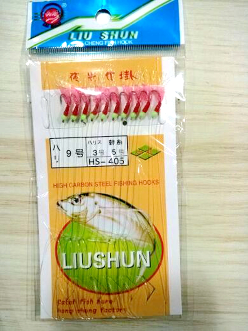 Full 10 packs of 10 hooks Liushun luminous cocked mouth string hook red leather bionic official hanging red leather luminous string hook white strip hook